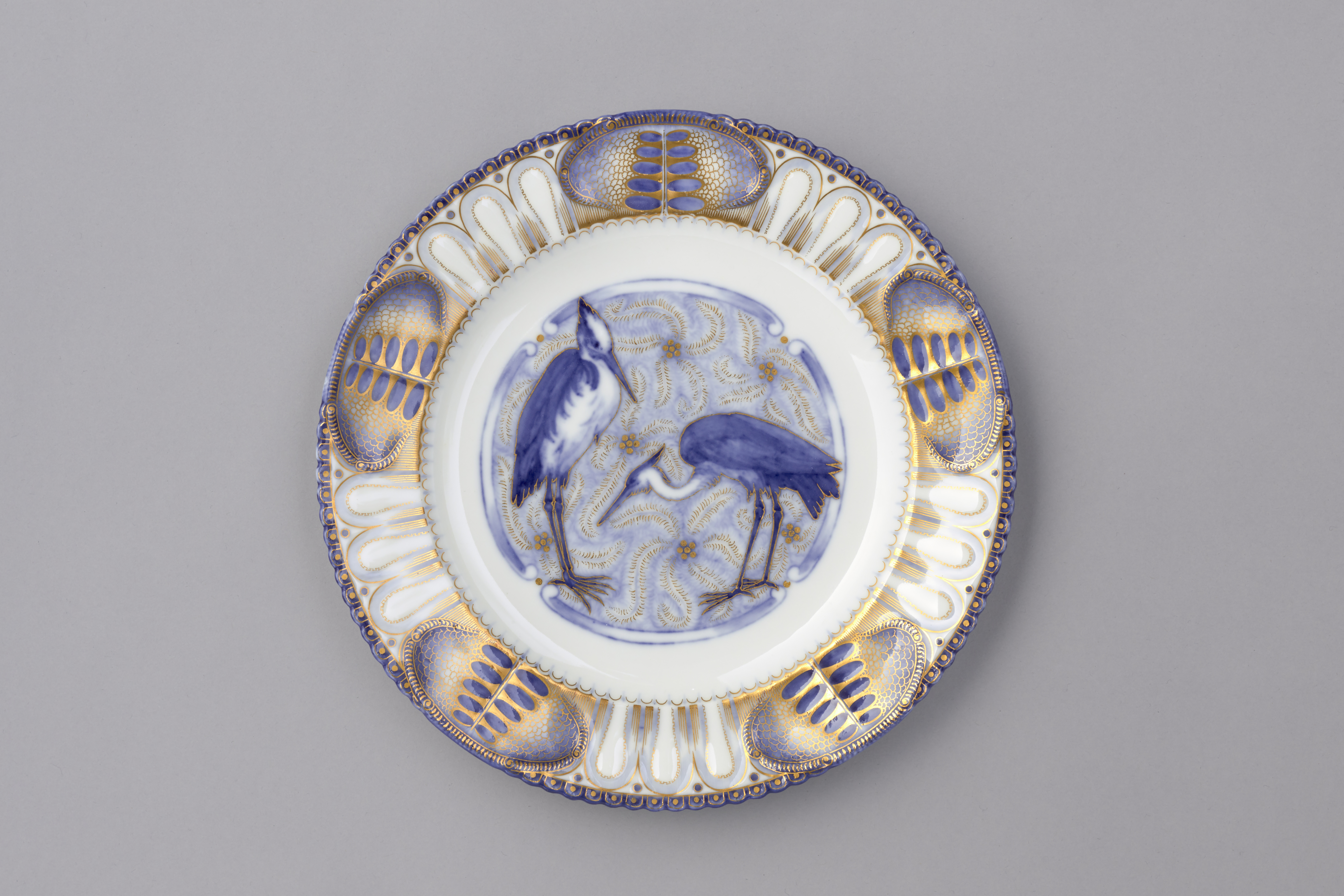 ⽫〈ブルーフルーテッド〉 染付⾦彩鷺⽂皿